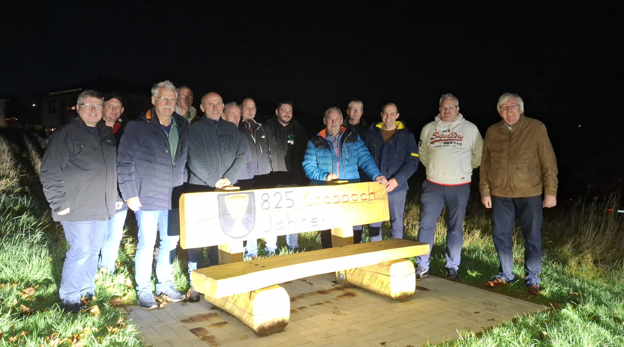Am Freitag, den 07.11.2025 wurde in einem kleinen Kreis den Bürgermeistern der schenkenden Gemeinden am Standort der Bank .. Ecke Langstraße/Reiner-Meutsch-Weg .. nochmals für diese schöne Bereicherung unserer Gemeinde gedankt.