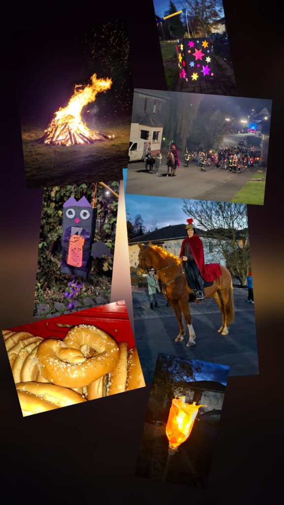 Am Dienstag, den 11.11.2025, fand ein stimmungsvoller Martinszug in Kroppach statt. Sehr viele Kinder mit leuchtenden Laternen begleiteten Sankt Martin auf seinem Pferd vom Sportplatz aus quer durch Kroppach bis hin zur Grundschule. Unterwegs stimmten die Kinder unter Begleitung von Sascha Becker mit dem Akkordeon einige Lieder an, welche sie gemeinsam mit ihren Lehrerinnen einstudiert hatten. An der Grundschule erwartete die Kinder eine leckere Martinsbrezel und ein loderndes Martinsfeuer. Die von der Grundschule „Kroppacher Schweiz“ initiierte Veranstaltung wurde unterstützt vom Kindergarten „Spatzennest“, der FFW Kroppach-Giesenhausen, sowie den Gemeinden Kroppach, Giesenhausen und Stein-Wingert. Herzlichen Dank auch an Jule als Sankt Martin und ihr Pferd.